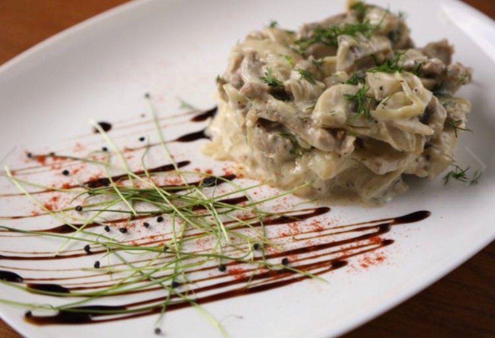 Медальйони зі свинини під соусом з білих грибів 220г.